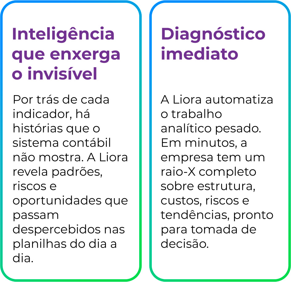 Enquanto muitos olham somente o que aconteceu, a Liora coloca luz sobre o que fazer agora. É o ponto em que a gestão deixa de olhar para trás e passa a guiar o futuro dos negócios.