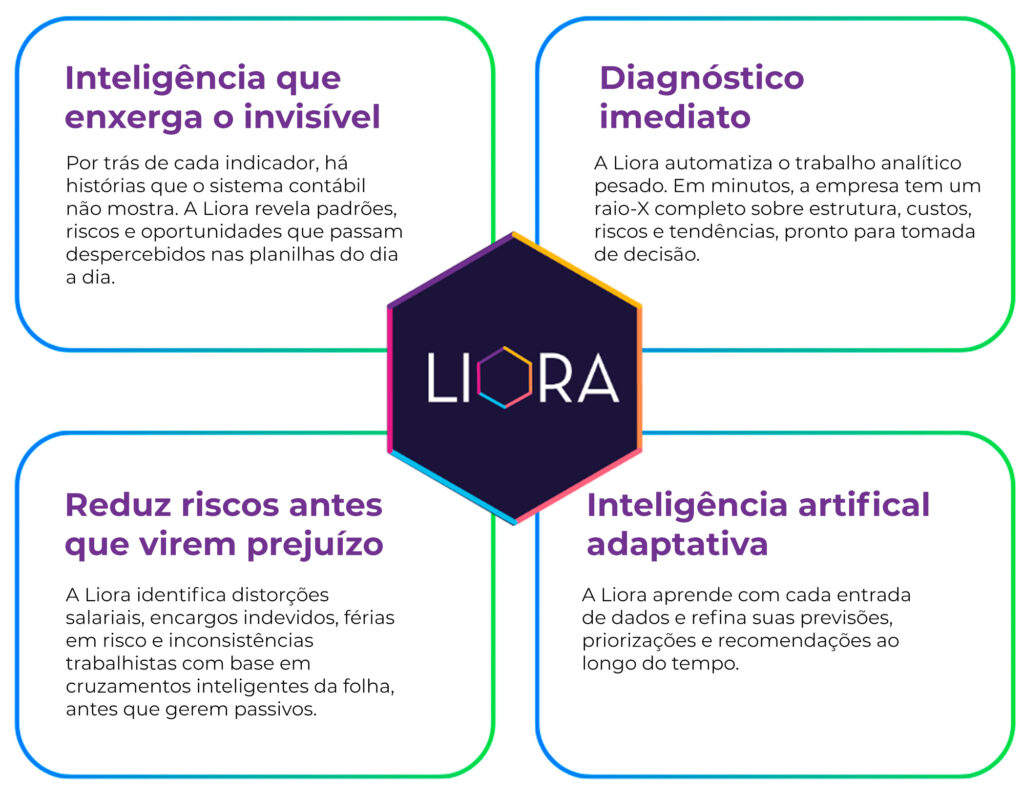A Liora transforma dados da folha de pagamento em insights estratégicos para a alta liderança.